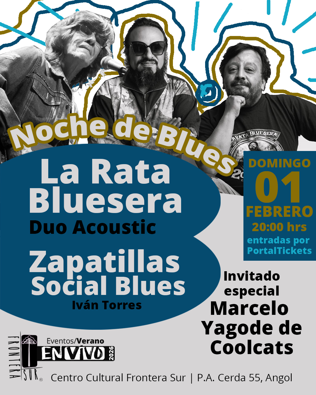 La buena noticia es que este domingo 1 de febrero la jornada se fortalecerá con la incorporación de Marcelo Yagode, destacado músico y referente del blues chileno, integrante de la reconocida banda Coolcats, quien se suma a esta noche especial dedicada al blues nacional.